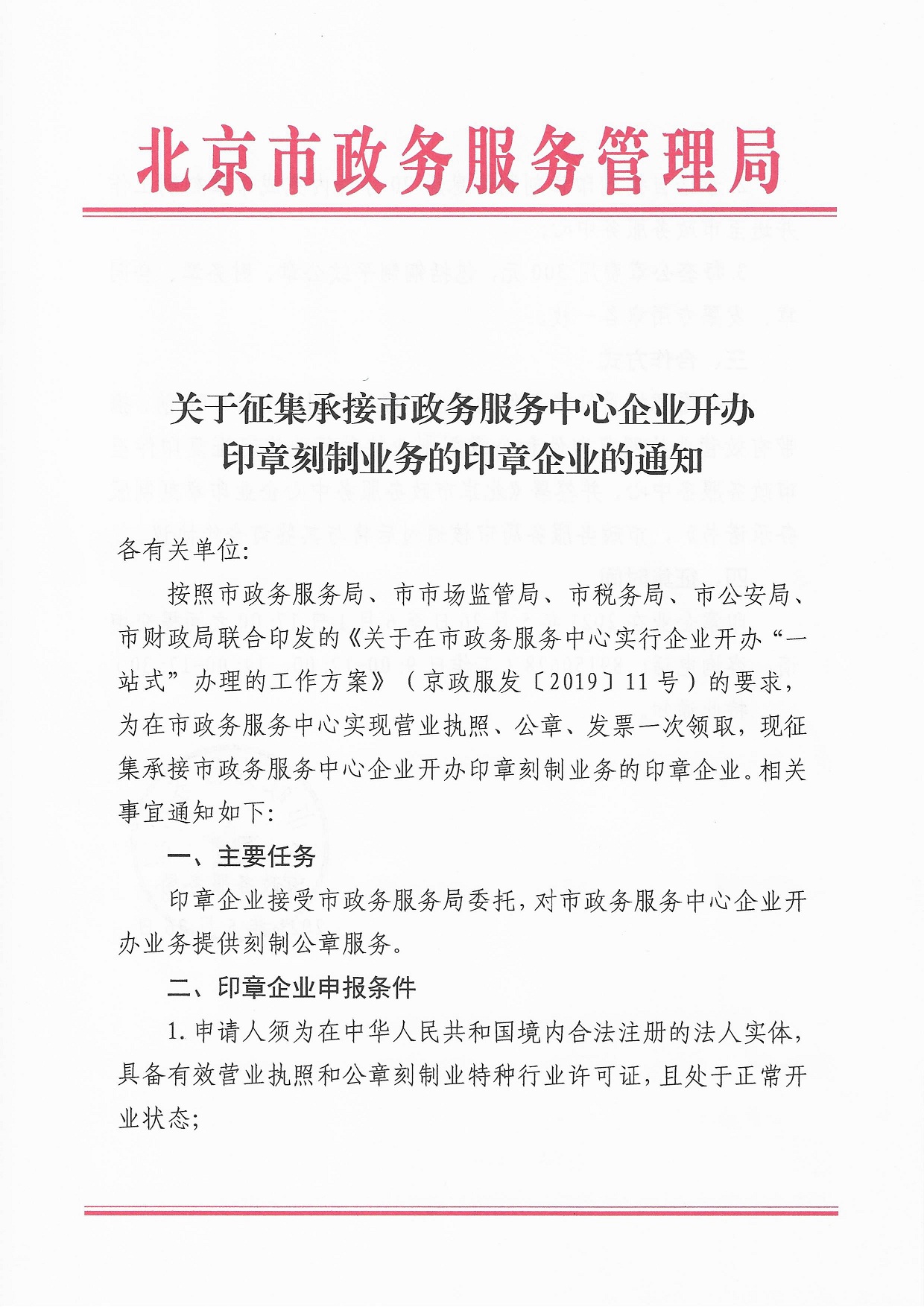 关于征集承接市政务服务中心企业开办印章刻制业务的印章企业的通知