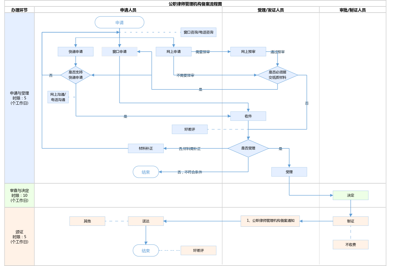 | 受理条件 | 根据《关于推行法律顾问制度和公职律师公司律师制度的意见》中办发[2016]30号 (二十四)党内法规工作机构、政府法制机构和国有企业法律事务部门,分别承担本单位法律顾问办公室职责,负责本单位法律顾问、公职律师、公司律师的日常业务管理,协助组织人事部门对法律顾问、公职律师、公司律师进行遴选、聘任、培训、考核、奖惩,以及对本单位申请公职律师、公司律师证书的工作人员进行审核等。 《公职律师管理办法》 司发通〔2018〕131号 第二条本办法所称公职律师,是指任职于党政机关或者人民团体,依法取得司法行政机关颁发的公职律师证书,在本单位从事法律事务工作的公职人员。 第二十四条 法律、法规授权的具有公共事务管理职能的事业单位、社会团体及其他组织,可以参照本办法设立公职律师。 申请单位属于党政机关、人民团体或法律、法规授权的具有公共事务管理职能的事业单位、社会团体及其他组织。材料齐全、真实有效、内容齐全、签字、盖章 | ||