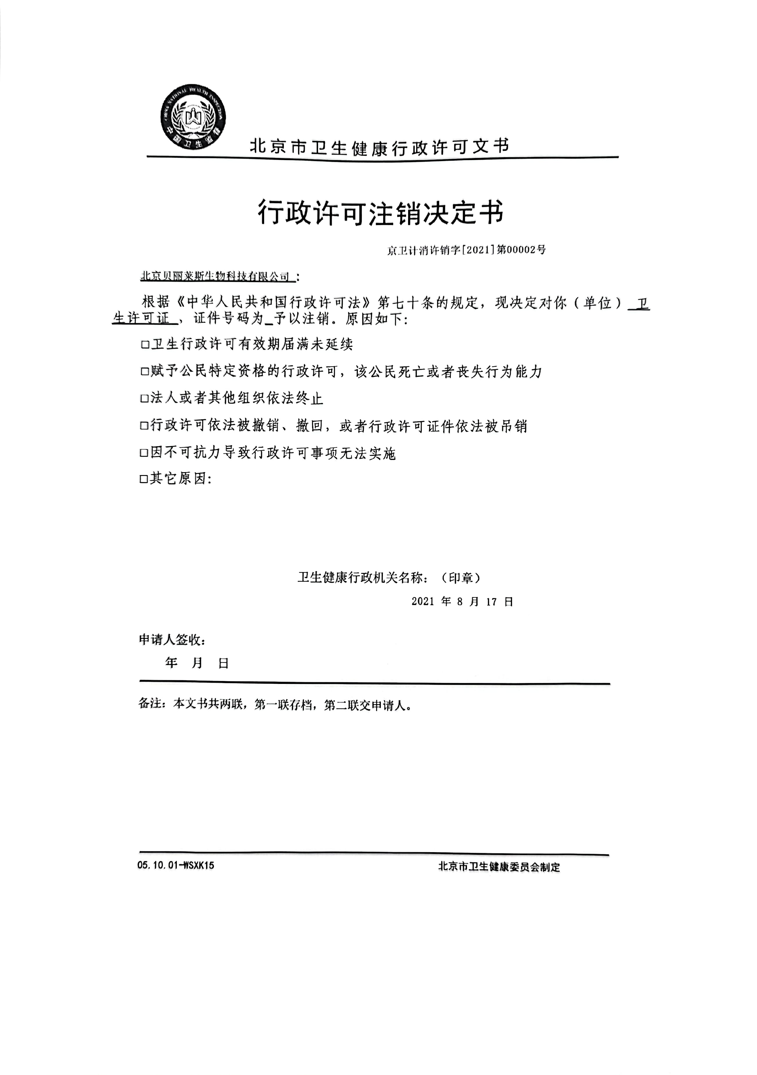 注销消毒产品生产企业卫生许可(一般办理方式)