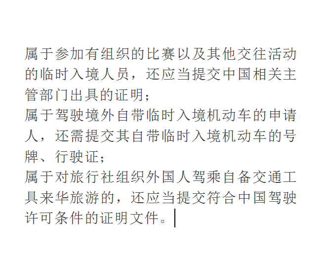 申请材料总要求:(一)申请人入出境身份证明; 1、港澳台居民的入出境身份证件,是《港澳居民来往内地通行证》、《台湾居民来往大陆通行证》或者外交部核发的《中华人民共和国旅行证》; 2、定居国外的中国公民的入出境身份证件,是《中华人民共和国护照》; 3、外国人的入出境身份证件,是其入境时所持有的护照或者其他有效入出境证件、有效签证或者停留、居留证件或者是外国人永久居留身份证;属于免签的,入出境身份证件是其入境时所持有的护照或者其他有效入出境证件。 准许入境期限”是指临时入境人员入出境身份证件上签注的准许入境期限。 4、港澳台居民持《港澳台居民居住证》申请临时驾驶许可的,不需要再提交入出境身份证件。 (二)申请人所持境外机动车驾驶证。属于非中文表述的,还应当提供翻译机构出具或者公证机构公证的中文翻译文本; (三)北京市卫健委确定的具有健康体检资质的二级以上医院、乡镇卫生院、社区卫生服务中心、健康体检中心等医疗机构出具的《机动车驾驶人身体条件证明》或军队、武装警察部队确定的团级以上医疗机构出具的有关身体条件的证明,属于申请小型汽车、摩托车临时驾驶许可的临时入境人员,免予提交身体条件证明。已通过网上转递传输信息的,免于提交纸制版证明; (四)属于参加有组织的比赛以及其他交往活动的临时入境人员,还应当提交中国相关主管部门出具的证明; (五)属于驾驶境外自带临时入境机动车的申请人,还需提交其自带临时入境机动车的号牌、行驶证; (六)属于对旅行社组织外国人驾乘自备交通工具来华旅游的,还应当提交符合中国驾驶许可条件的证明文件; (七)申请人近期半身免冠正面一寸白底彩色照片2张。