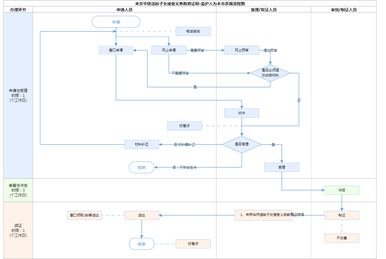 根据《中华人民共和国义务教育法》、《中华人民共和国归侨侨眷权益保护法》及其实施办法,制定本规定。 二、 本规定所称华侨子女,是指定居国外的中国公民的适龄子女。 三、华侨子女在其国内监护人户口所在地就读实施义务教育学校的,应当视同当地居民子女办理入学手续,依法享受免缴学费和杂费的权力。国内监护人的选择,原则上按照父母;祖父母、外祖父母;兄、姐;关系密切的其他亲属、朋友的顺序确定。 四、 办理就读须提供的有关材料及具体办法,由各省(区、市)根据实际情况研究制订。 五、接收华侨子女的学校,要制订措施,积极做好华侨子女的教育培养工作,关心照顾他们的学习和生活;不得以任何名义和形式设立针对华侨子女的收费项目或提高收费标准。 六、 华侨子女回国就读外籍人员子女学校或民办学校,不适合用本规定。 七、外籍华人子女来华就读实施义务教育的学校,各省(区、市)可根据本规定精神,结合本地区实际研究决定。 八、 本规定自印发之日起施行。(关于华侨子女回国接受义务教育相关问题的规定)1、符合来京华侨适龄子女身份。2、申请人提交的材料齐全。 3、申请材料符合受理条件。