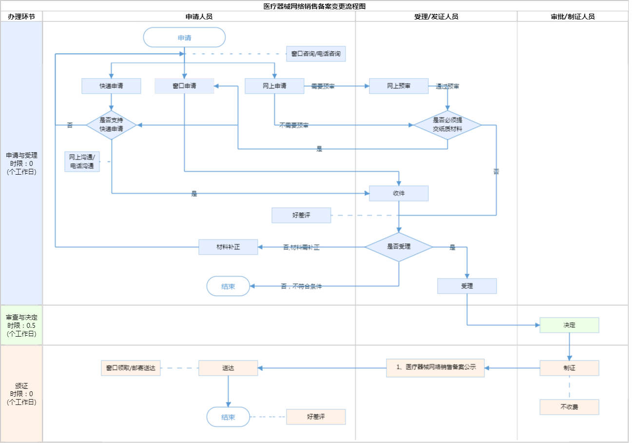 第八条 从事医疗器械网络销售的企业,应当填写医疗器械网络销售信息表,将企业名称、法定代表人或者主要负责人、网站名称、网络客户端应用程序名、网站域名、网站IP地址、电信业务经营许可证或者非经营性互联网信息服务备案编号、医疗器械生产经营许可证件或者备案凭证编号等信息事先向所在地设区的市级食品药品监督管理部门备案。相关信息发生变化的,应当及时变更备案。(来源:医疗器械网络销售监督管理办法) 1.材料齐全,填写完整;