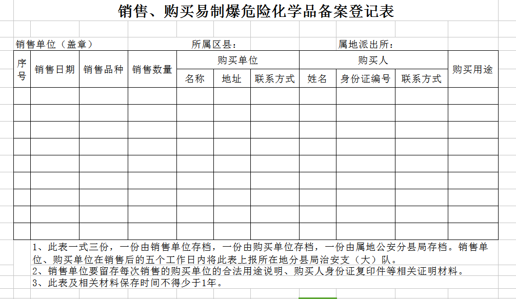 | 受理条件 | 《危险化学品安全管理条例》国务院令2002年第344号发布,2011年2月16日国务院第144次常务会议修订通过,2013年12月7日中华人民共和国国务院令第645号公布,自2013年12月7日起施行的《国务院关于修改部分行政法规的决定》修正。 第四十一条 危险化学品生产企业、经营企业销售剧毒化学品、易制爆危险化学品,应当如实记录购买单位的名称、地址、经办人的姓名、身份证号码以及所购买的剧毒化学品、易制爆危险化学品的品种、数量、用途。销售记录以及经办人的身份证明复印件、相关许可证件复印件或者证明文件的保存期限不得少于1年。 剧毒化学品、易制爆危险化学品的销售企业、购买单位应当在销售、购买后5日内,将所销售、购买的剧毒化学品、易制爆危险化学品的品种、数量以及流向信息报所在地县级人民政府公安机关备案,并输入计算机系统。 第四十二条 使用剧毒化学品、易制爆危险化学品的单位不得出借、转让其购买的剧毒化学品、易制爆危险化学品;因转产、停产、搬迁、关闭等确需转让的,应当向具有本条例第三十八条第一款、第二款规定的相关许可证件或者证明文件的单位转让,并在转让后将有关情况及时向所在地县级人民政府公安机关报告。 1.材料齐全,填写完整; 2.提交的证照证件或批复文件齐全完整、如提交复印件,应完整清晰并与原件一致; 3.申请材料所载基本信息与提交的证照证件或批复文件所载内容一致; 4.申请材料按要求签字、盖章,且签章内容与申请材料所载内容、提交的证照证件或批复文件所载内容一致。 | ||
