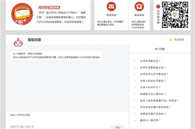 新版北京市政府门户网站增加了“智能问答”栏目。(王飞 摄)