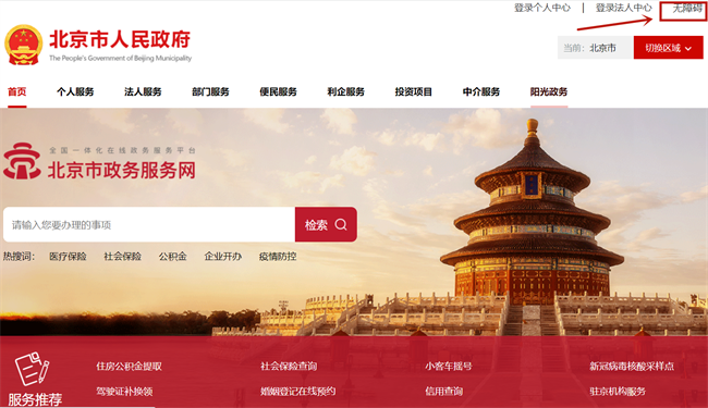 图1:北京市政务服务网的无障碍模式入口