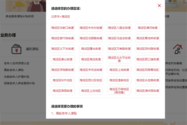 图6:“高龄老年人津贴”办理页面