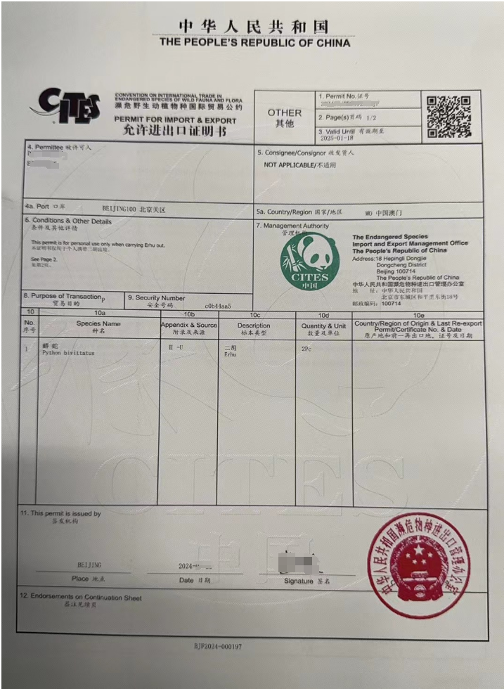 {"IS_GUIDE":"0","ONLINE_DECLARE_SYSTEM_MODE":"","ITEM_REALITY_USELEVEL":"","SERVICE_OBJCT":"","IS_CONSTRUCTION":"0","CL_SERVICE_TYPE":"","APP_CODE_ID":"","YESNO_CITY_UNICOM":"0^1","CROSS_AREA":"","ISSHOHCENTER":"0","WECHAT_CODE_ID":"","FINANCIAL":"","LITTLEPROGRAM_CODE_NAME":"","CROSS_AREA_ALL":"","CROSS_PROVINCE":"","ALIAS_NAME":"[]","EAR_DISABILITY_GRAD":"","LIB_DISABILITY_GRAD":"","SPEAK_DISABILITY_GRAD":"","REGISTER":"","ONLINE_HANDLING_DEPTH_STANDARD":"05","APPROVAL_TYPE":"1","MIND_DISABILITY_GRAD":"","ACCEPTSERVICE":"99","YWBLX_ID":"0b50eff7-9288-455f-b04c-b910e8e9a3b9","ONLINE_DECLARE_SYSTEM_DEPT":"","CONSTRUCTION_EXPANSION":"0","EMPOWER":"0","EXEMPT_MATERIALS":"","LITTLEPROGRAM_CODE_ID":"","EYE_DISABILITY_GRAD":"","ISMONVEINCENTER":"1","DATA_FLAG":"XZXK_NEW","BUSINESS_APPROVAL_DEPT":"北京市政务服务和数据管理局","POWER_NAME":"野生动植物进出口审批","ITEM_ATTRIBUTE":"04^05^11","CROSS_AREA_ATEXT":"","AGE":"","BGSYSTEM_APPROVAL_OTHER":"","WIT_DISABILITY_GRAD":"","WECHAT_CODE_NAME":"","POWER_CODE":"B3208504","DISABILITY_TYPE":"","IS_ENABLE_CERTIFICATE_SHARE":"","POWER_ATTRIBUTE":"1","ONLY_ID":"bef951fd-bc01-4d4e-bf36-739b82659d1b","YES_NO_OPEN":"1","BGSYSTEM_APPROVAL_NAME":"北京市统一行政审批管理平台","APP_CODE_NAME":"","HOLDER":"","VERSION":"20241125"}