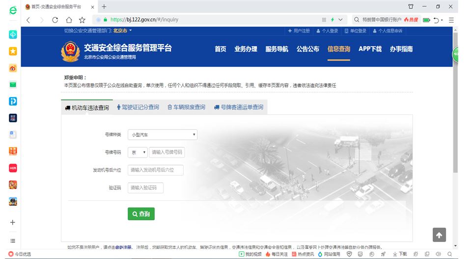 | 行使内容 | 机动车违法信息查询 | ||