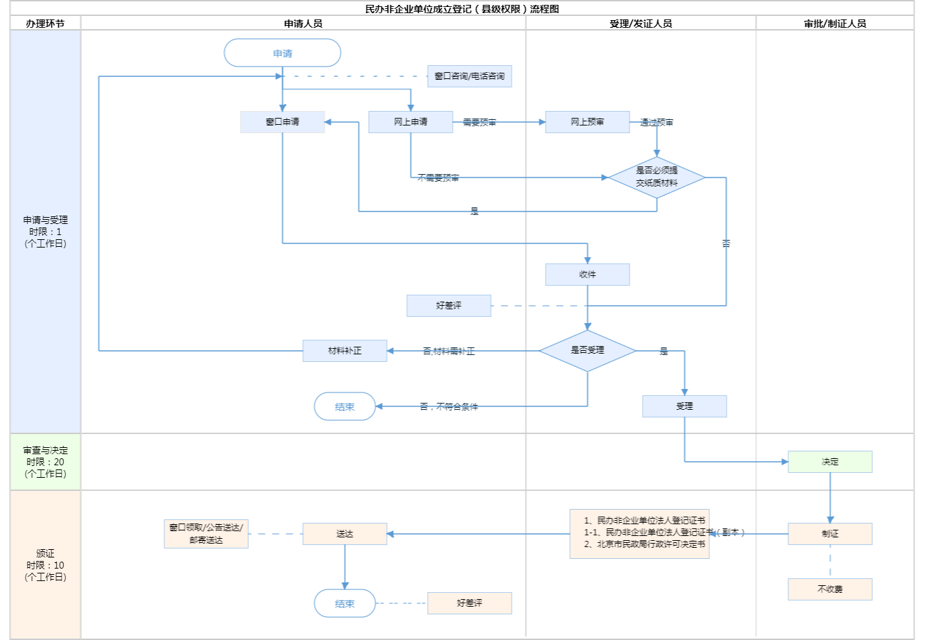 | 受理条件 | 第八条 申请登记民办非企业单位,应当具备下列条件: (一)经业务主管单位审查同意; (二)有规范的名称、必要的组织机构; (三)有与其业务活动相适应的从业人员; (四)有与其业务活动相适应的合法财产; (五)有必要的场所。民办非企业单位的名称应当符合国务院民政部门的规定,不得冠以“中国”、“全国”、“中华”等字样。 来源(《民办非企业单位登记管理暂行条例》、中华人民共和国国务院令第251号) 申报材料齐全,内容填写真实、完整,签章有效。 | ||