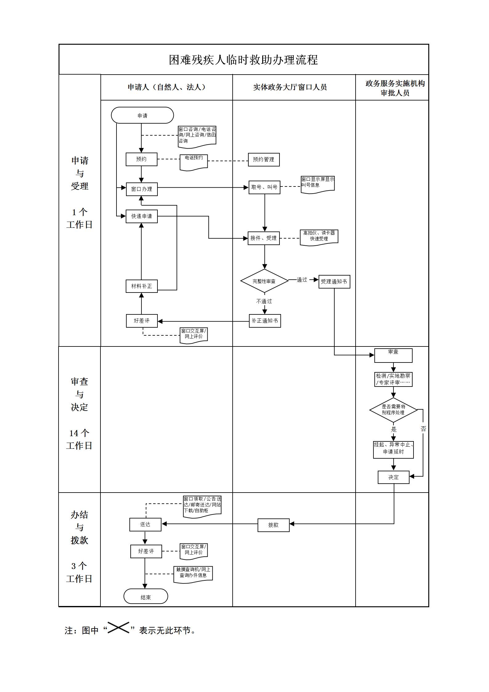 | 受理条件 | 根据《海淀区困难残疾人临时救助实施办法》(海残字〔2019〕38号) 1、适用程序正确、符合以下五种临时救助条件(享受本区民政部门低保待遇、城市重残人生活补助或低收入救助的残疾人;未享受低保待遇、城市重残人生活补助或城乡低收入救助的失业且无稳定收入的男年满16周岁不满60周岁,女年满16 周岁不满55周岁的残疾人;未享受低保低保待遇、城市重残人生活补助或城乡低收入救助的一户多残或老残一体家庭中无稳定性收入的残疾人;因自然灾害、突发性、不可抗拒性因素或其他特殊情况造成家庭生活特别困难的残疾人;本区农业户籍享受低收入救助的残疾人家庭,无能力实现危房改造的)之一的、审核意见正确的,予以批准(来源:《海淀区困难残疾人临时救助实施办法》第三条);提交材料齐全、真实有效、填写完整清晰 2、适用程序不正确,不符合临时救助条件的,或者初审意见错误、不明确的,做出不予批准的决定。 | ||