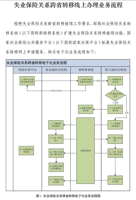 办件承诺办结时限说明:转入地接收到申请人转移申请后5个工作日审核,符合条件的向转出地发送失业保险关系转移接续联系函。转出地收到转入地发出的联系函后,对符合条件的,在5个工作日内发送信息表,待转入地审核。转出地经办机构应在失业保险关系转出后的1个月内向转入地划转失业保险费用。(承诺时限为办理流程中“审查与决定”环节的计时时限)
