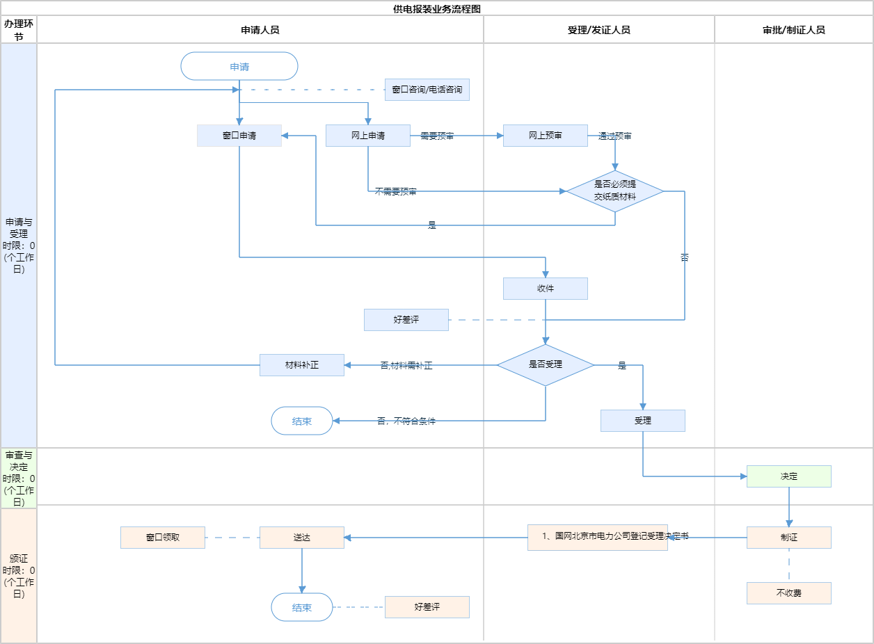 办件承诺办结时限说明:客户提出报装申请,交齐材料,即视为受理。(承诺时限为办理流程中“审查与决定”环节的计时时限)