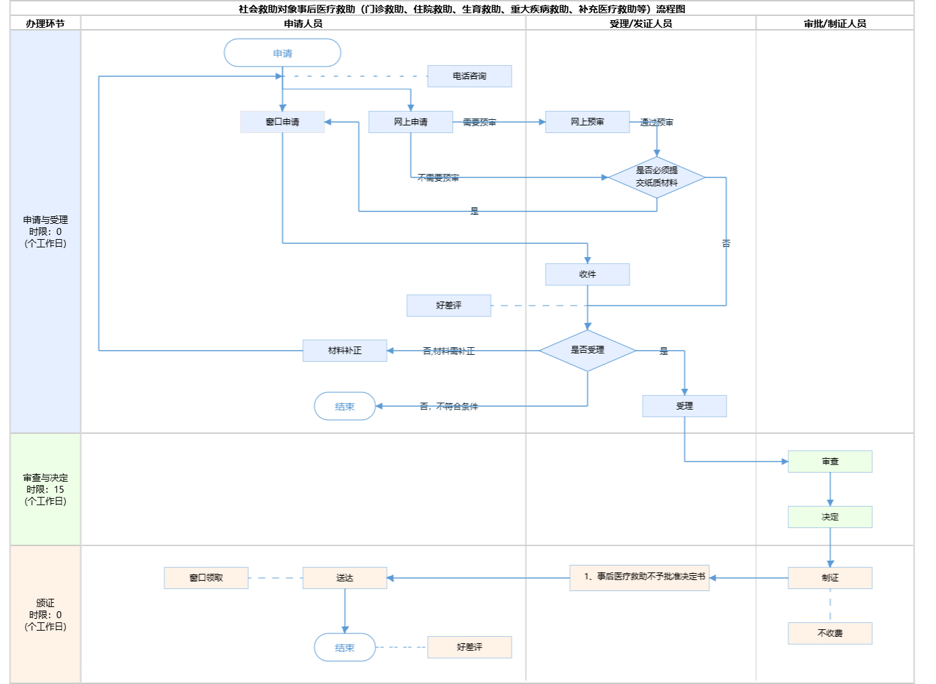 社会救助对象事后医疗救助(门诊救助、住院救助、生育救助、重大疾病救助、补充医疗救助等)